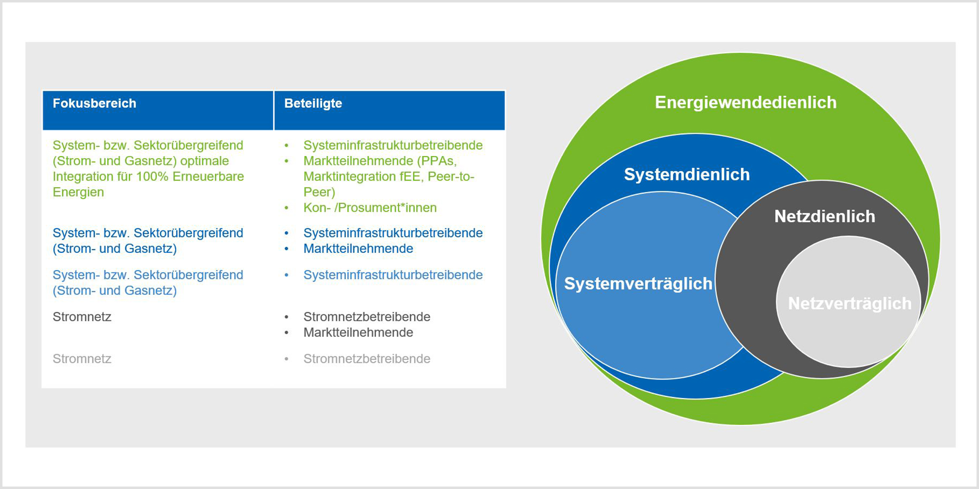 Um die Energiesysteme zukunftsfähig zu machen, wird ein energiewendedienlicher Ansatz diskutiert. Die Wasserstoffeinspeisung darf beispielsweise die Kapazitätsgrenzen des Gasnetzes nicht übersteigen, wenn ein Elektrolyseur gleichzeitig netzdienlich für den Strommarkt gebraucht wird. Faktoren wie unter anderem der Standort im Strom- und Gasnetz sind deshalb ebenfalls relevant. Der energiewendedienliche Betrieb einer Anlage muss alle Systeme und Sektoren zu einer einhundertprozentigen Versorgung mit Erneuerbaren Energien optimieren. Dabei wird in diesem Verständnis die bestmögliche physikalische und Markt kompatible Integration der Erneuerbaren Energien angestrebt. Das kann nur gelingen, wenn alle Akteure für diese Zielerreichung zusammenarbeiten. Genau diese Zusammenarbeit wird über die Arbeitsgruppe Gesamtsystemintegration der Normungsroadmap abgedeckt.