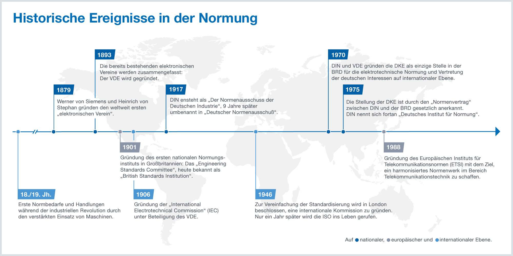 • 1901 wurde in Großbritannien das erste nationale Normungsinstitut namens „Engineering Standards Committee“ (heute British Standards Institution) begründet.