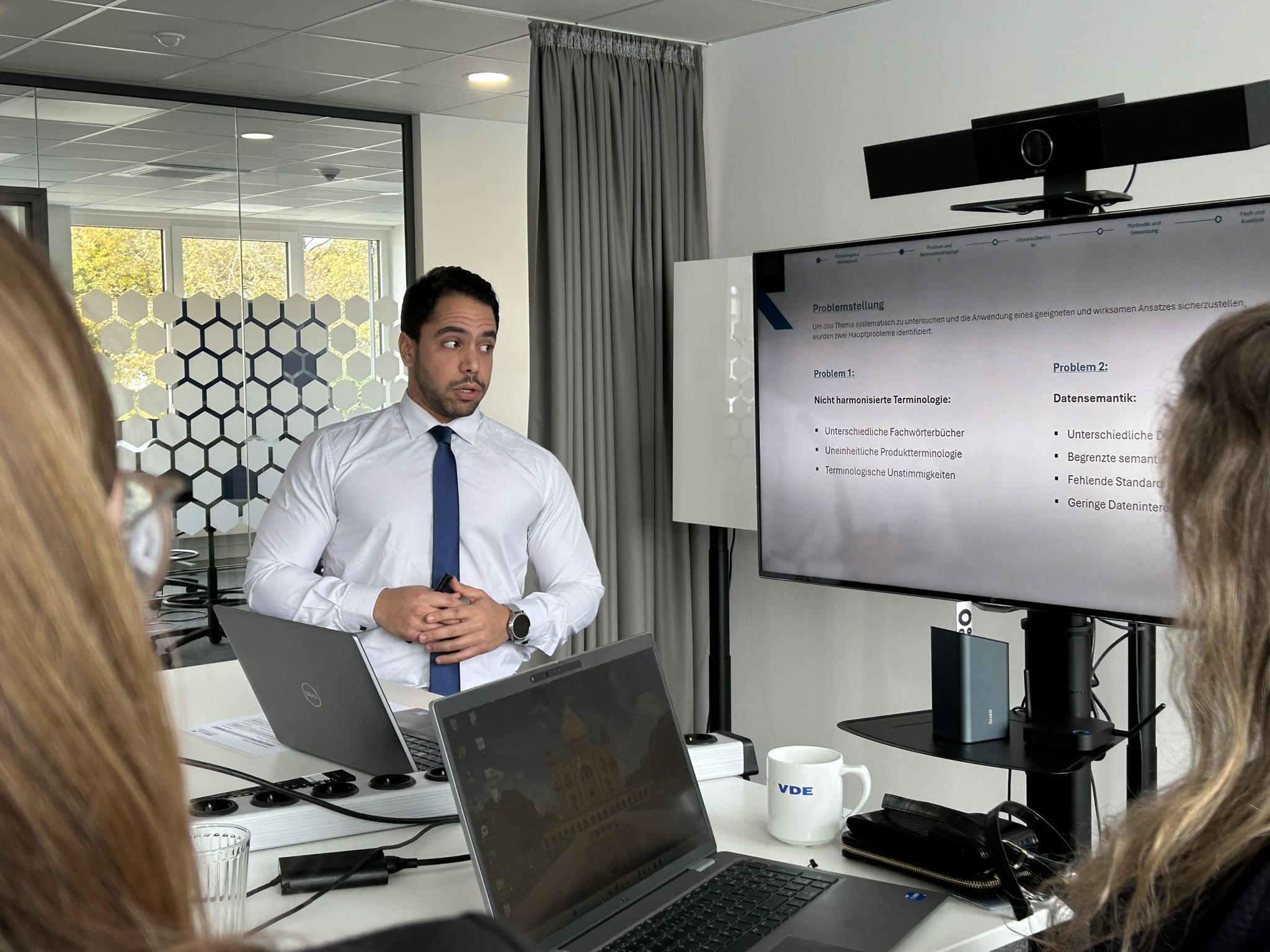 Im Beisein von DKE Geschäftsführer Michael Teigeler wurde der diesjährige Gewinner von einer Jury aus Fachverantwortlichen und Organisator*innen gekürt und geehrt. Wir gratulieren Christopher Wolters herzlich zu seiner herausragenden Arbeit, der gelungenen Präsentation und seinem Erfolg im STS-Programm der DKE.